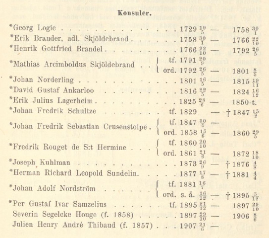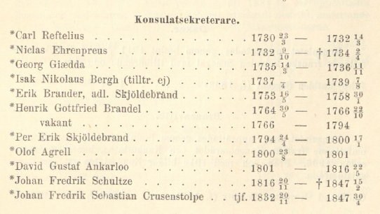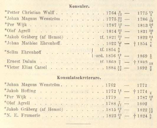 (11) Dans son livre publié en 1826, Shaller écrivit cependant avec une certaine générosité : « Il est nécessaire de mentionner, pour l’honneur du Danemark et de la Suède, que le Consulat du premier était vacant ici sous la garde d’un Gardien seulement, et que celui de la Suède était administré par un Secrétaire en l’absence du Consul en congé. »