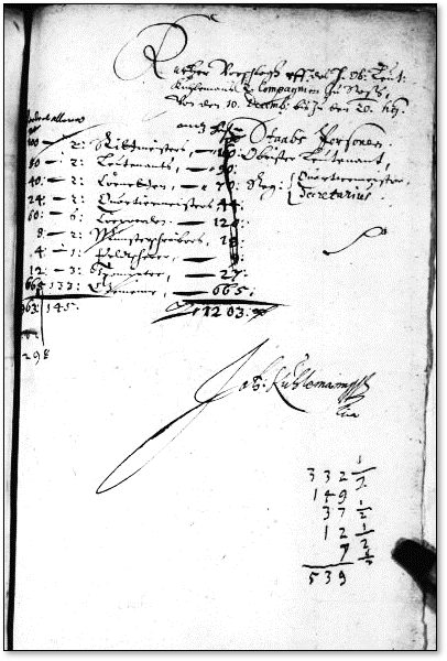 Le Lieutenant-Colonel de cavalerie Johan Kuhlman fait l’inventaire de ses troupes en 1637. Rullors Suédois.