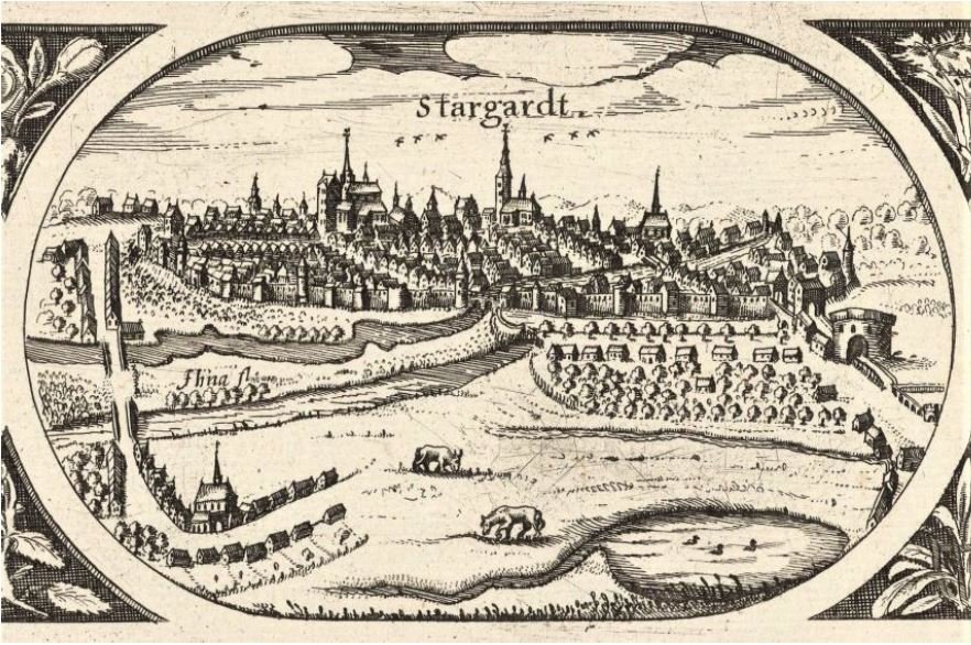 Quelques mois après les exploits de Gerhard sur le plateau de Breslau (1), c’était au mois d’octobre 1635, et alors que l’armée Suédoise était toujours stationnée à Stargard depuis bientôt cinq ans, les ennemis des Suédois s’enhardirent et décidèrent de refaire une apparition dans le duché de Poméranie et d’attaquer la garnison. En ce mois d’octobre et alors qu’il commençait à faire froid dans la région, le grand général impérial Rudolf von Marazin (2) décida de faire le siège de la ville. L’armée ennemie prit position tout autour de la ville empêchant les Suédois de sortir et de se ravitailler. Ils n’avaient plus aucune chance de vaincre l’ennemi. Le Maréchal Johan Banér (3) était parti en campagne avec une partie de l’armée et on ne pouvait plus envoyer de messagers pour l’avertir et lui demander de porter secours aux Suédois assiégés dans la ville.