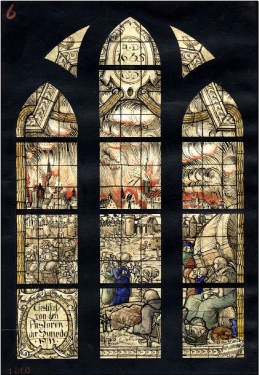 On raconte que seules seize maisons et six échoppes ont survécu à l’incendie. Toutes les autres maisons et églises ont brûlé ! Tout. L’Église de la Sainte Vierge, le monastère des Augustins et le nouveau lycée, tout a brûlé. Et ce n’était point la foudre, ni un accident de four qui avait provoqué la perte presque totale de la ville mais un acte irresponsable commis par le beau-frère de Johan, Jacob Larsson Bohm. Les Impériaux n’avaient pas pu prendre la ville … car il n’y en avait plus.